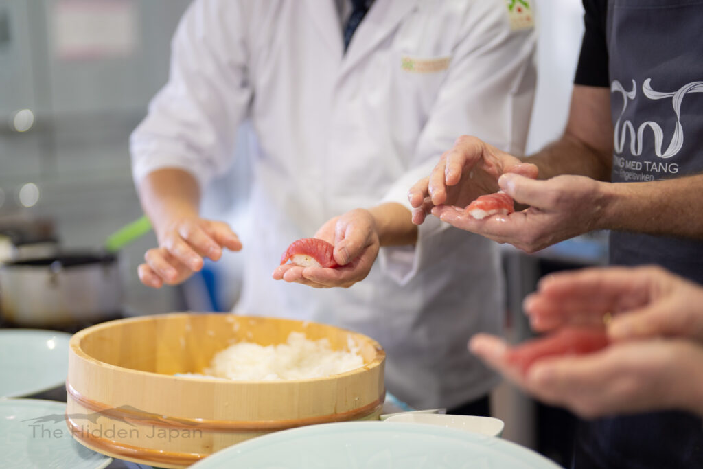 After a tour of the famous Shiogama tuna auction and purchasing fish at the nearby wholesale market, learn from a local chef how to work with multiple types of Japanese knives to prepare rolled and nigiri sushi by hand with fresh ingredients from Miyagi.
