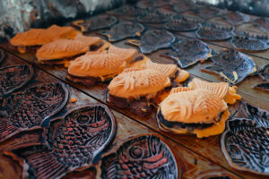 At old-fashioned sweets shop Kurikomaya in the Muikamachi neighborhood of Kurihara City, learn from the shop owner how to make taiyaki sweets, then try your hand at making one yourself.