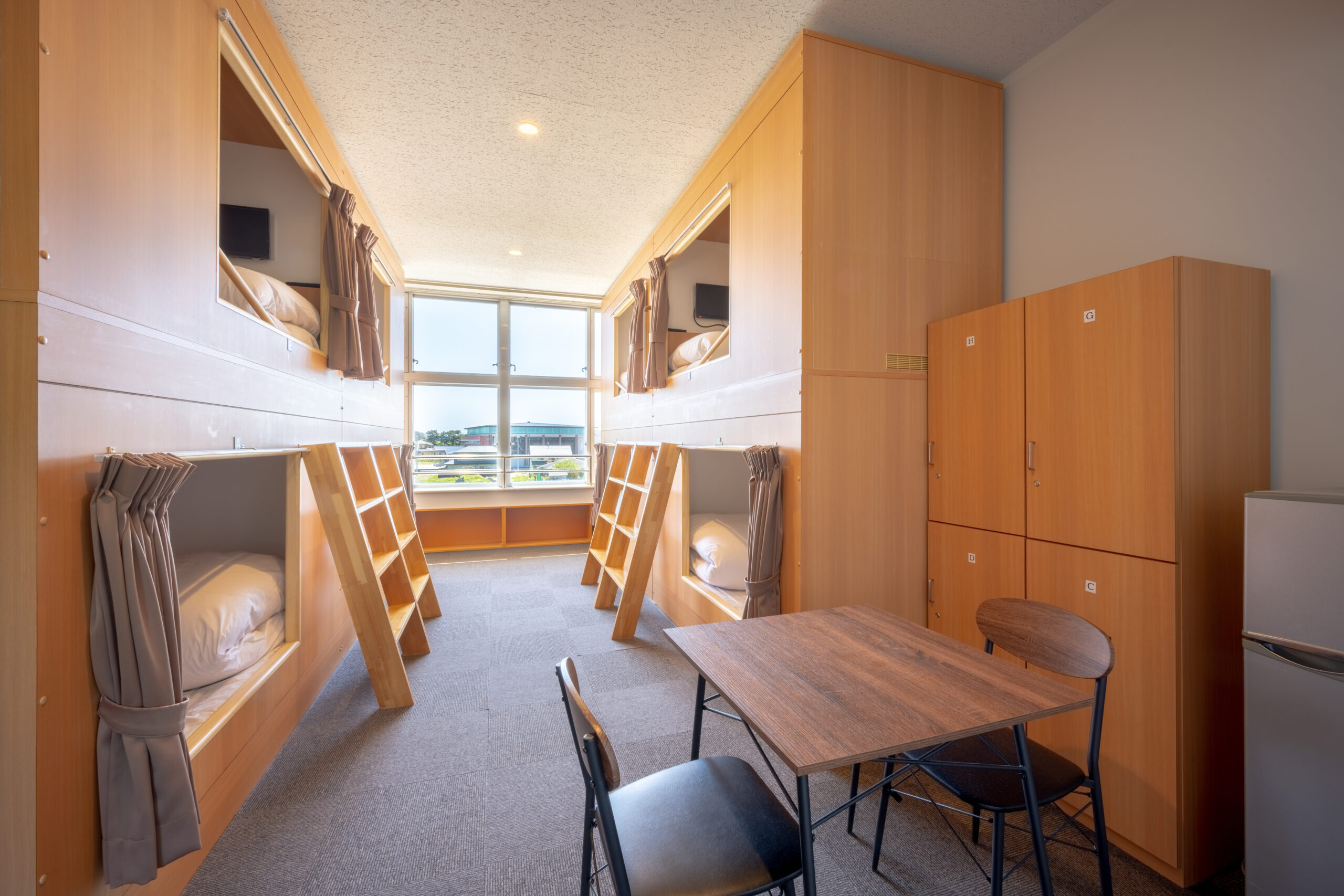 Double occupancy rooms, four-person occupancy rooms, and eight-person occupancy rooms are available. Eight-person occupancy rooms offer bunk beds, which are popular with school field trips and sports teams. The Glamping Dome allows pets.